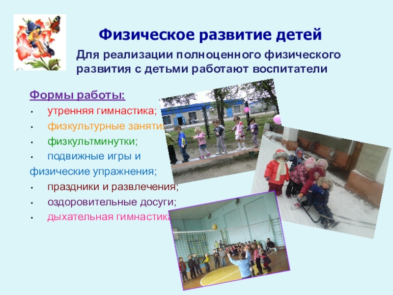 Для реализации полноценного физического развития с детьми работают воспитатели