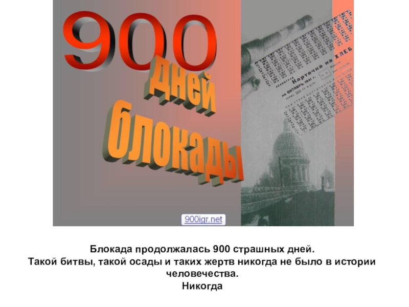 Слайд 13Блокада продолжалась 900 страшных дней.