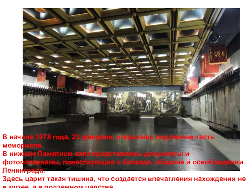 Слайд 12В начале 1978 года, 23 февраля, открылась подземная часть мемориала.