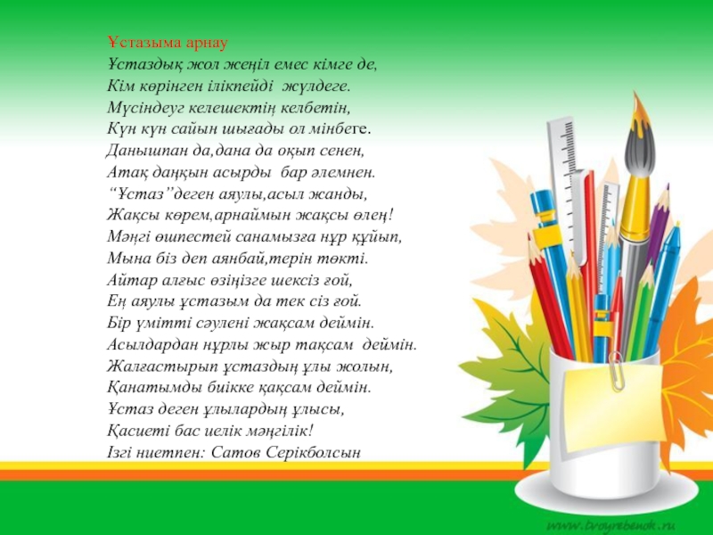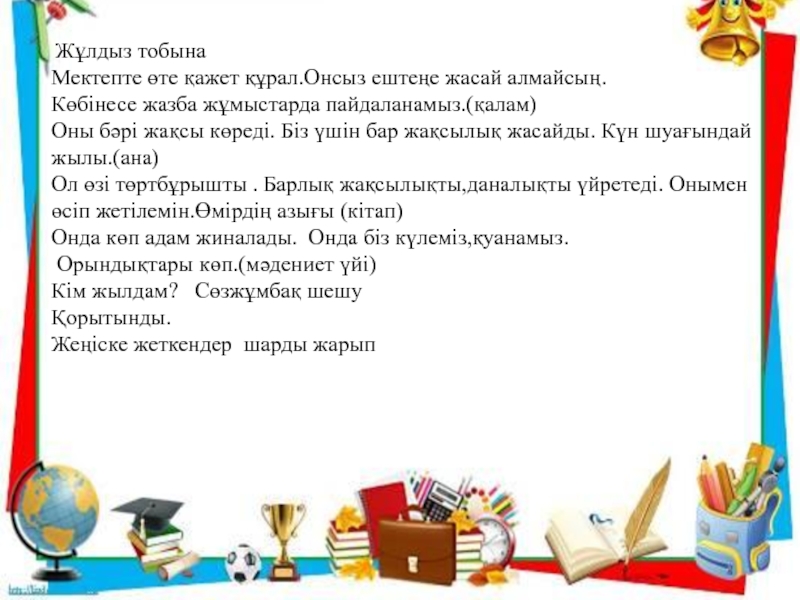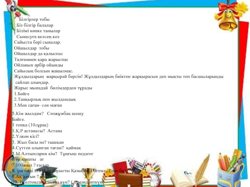 Ендеше,ерінбей үнемі ізденіс үстінде жүретін алғыр оқушыларымызды ортаға шақырамыз.