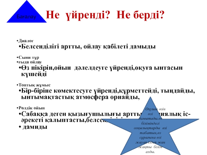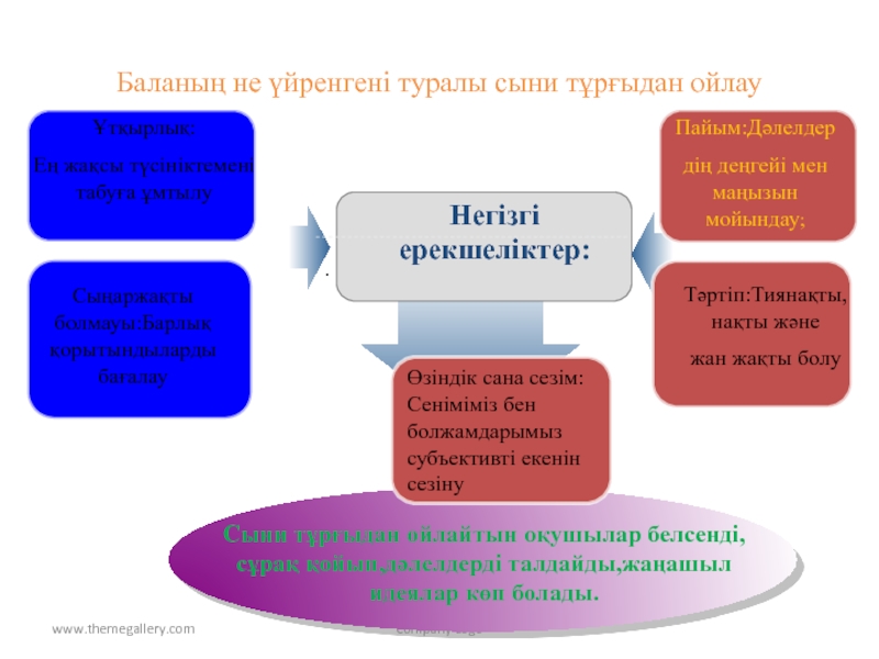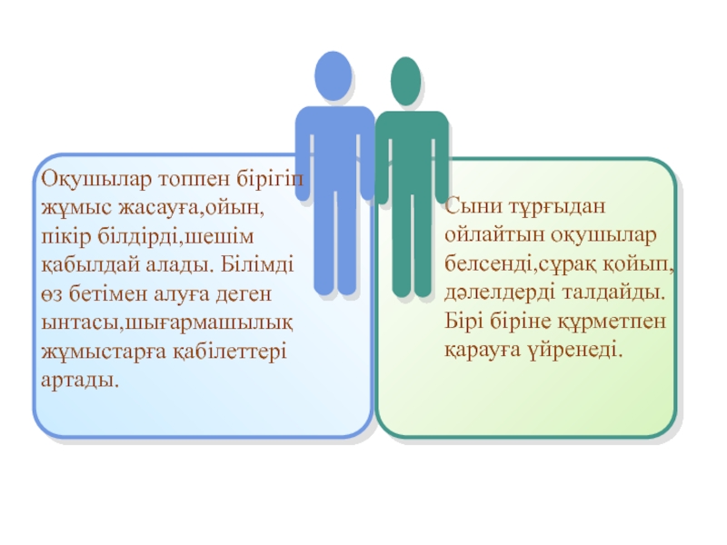 Сыни тұрғыдан ойлайтын оқушылар белсенді, сұрақ қойып,дәлелдерді талдайды,жаңашыл идеялар көп болады.