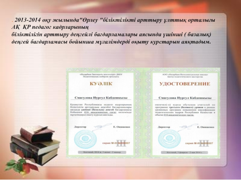 . 2013-2014 оқу жылында"Өрлеу "біліктілікті арттыру ұлттық орталығы