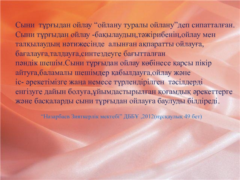 Сыни тұрғыдан ойлау -бақылаудың,тәжірибенің,ойлау мен