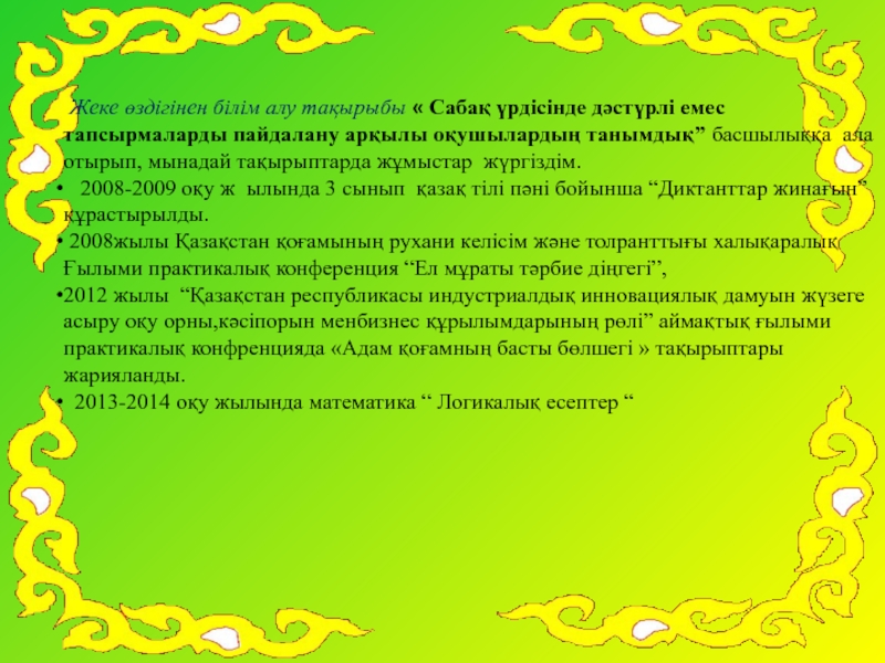 Слайд 33.Шығармашылық жұмыстарға қабілттерін арттыру.