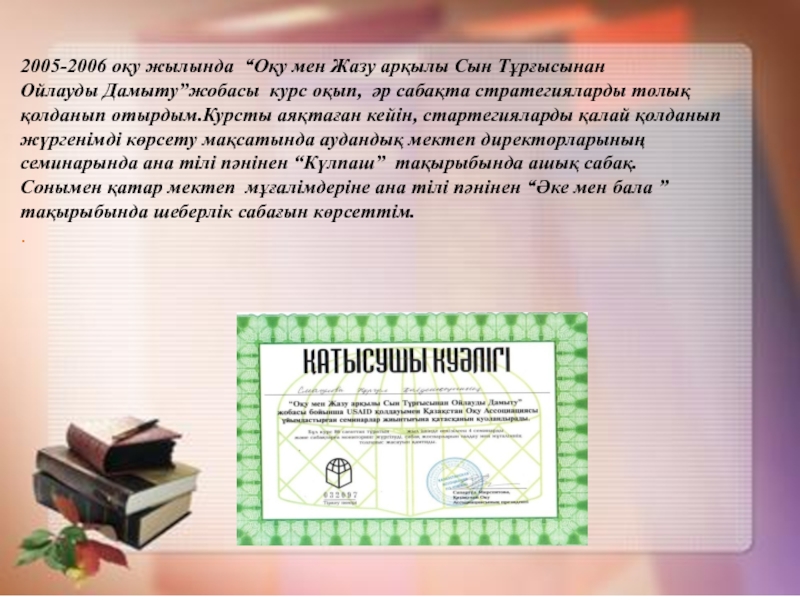 Слайд 52005-2006 оқу жылында “Оқу мен Жазу арқылы Сын Тұрғысынан