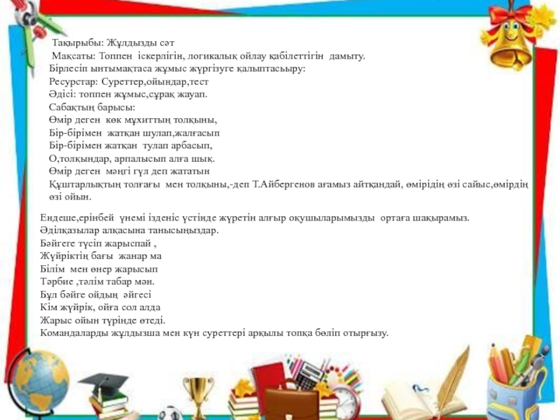 Сын тұрғысынан ойлау арқылы оқушылардың шығармашылық қабілетін дамыту.