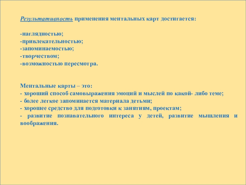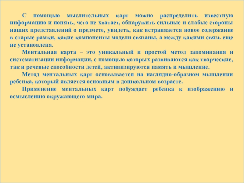 Метод ментальных карт основывается на наглядно-образном мышлении ребенка, который является основным в дошкольном возрасте.