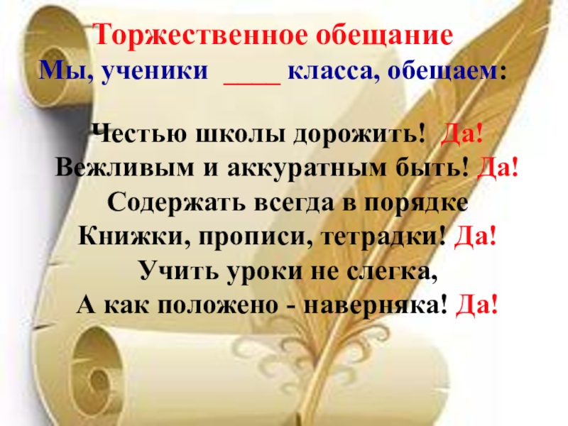 Мы, ученики ____ класса, обещаем: