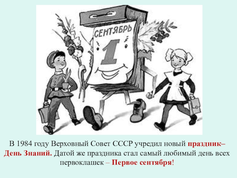 Слайд 6В 1984 году Верховный Совет СССР учредил новый праздник– День Знаний. Датой