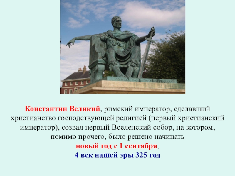 Слайд 3Константин Великий, римский император, сделавший христианство господствующей религией (первый христианский император),