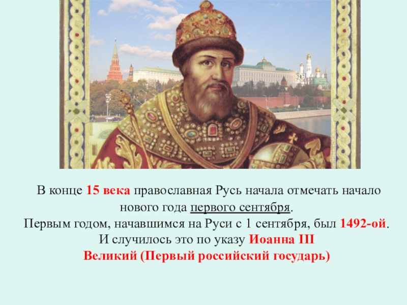 Слайд 4 В конце 15 века православная Русь начала отмечать начало нового