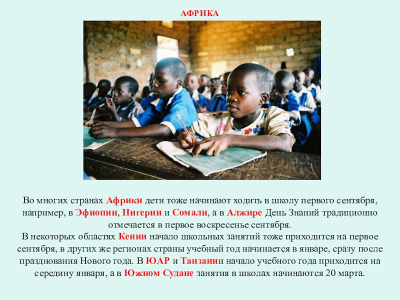 Во многих странах Африки дети тоже начинают ходить в школу