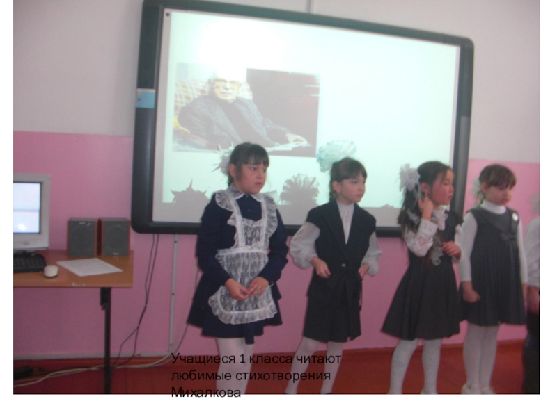 Слайд 15Учащиеся 1 класса читают любимые стихотворения Михалкова