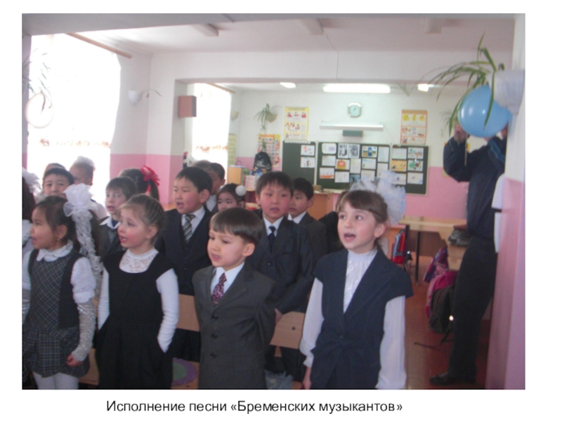 Слайд 22Исполнение песни «Бременских музыкантов»