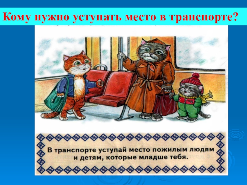 Слайд 9Кому нужно уступать место в транспорте?