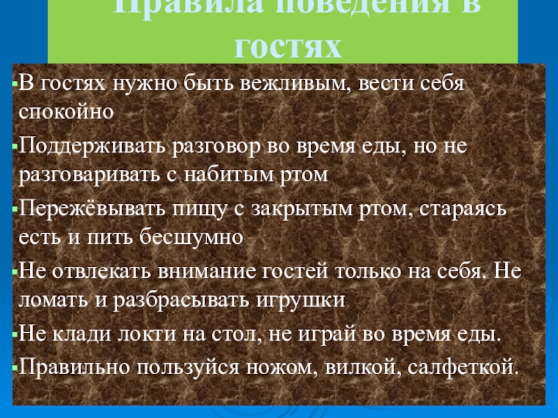 Слайд 7 Правила поведения в гостях