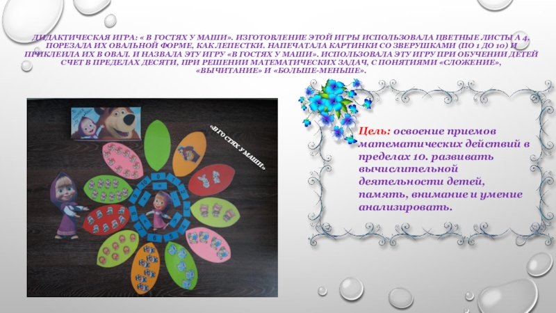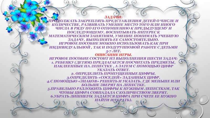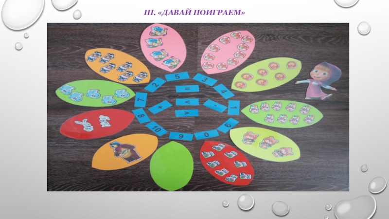 Цель: освоение приемов математических действий в пределах 10. развивать вычислительной деятельности детей, память, внимание и умение анализировать.
