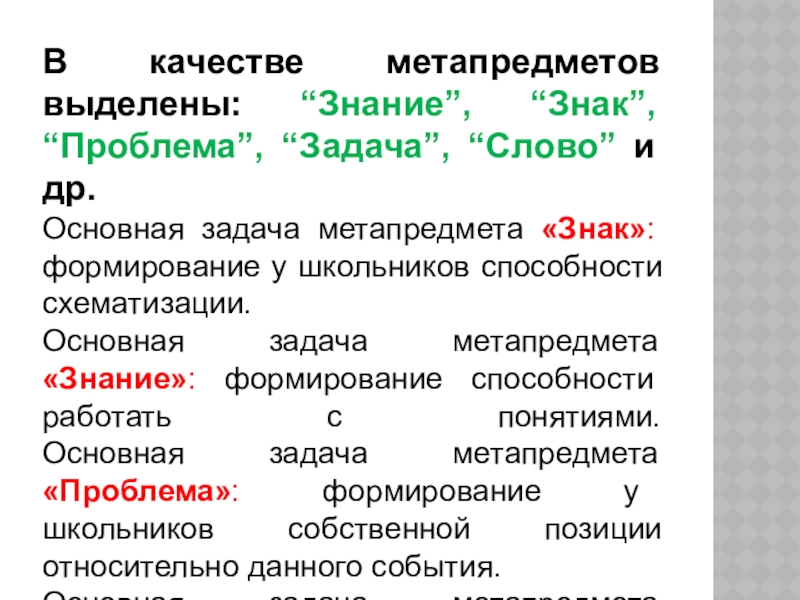 Признаки метапредметного урока