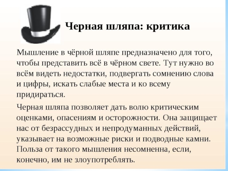 Черная шляпа- пессимист.