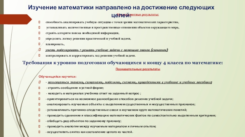 Изучение математики направлено на достижение следующих целей: