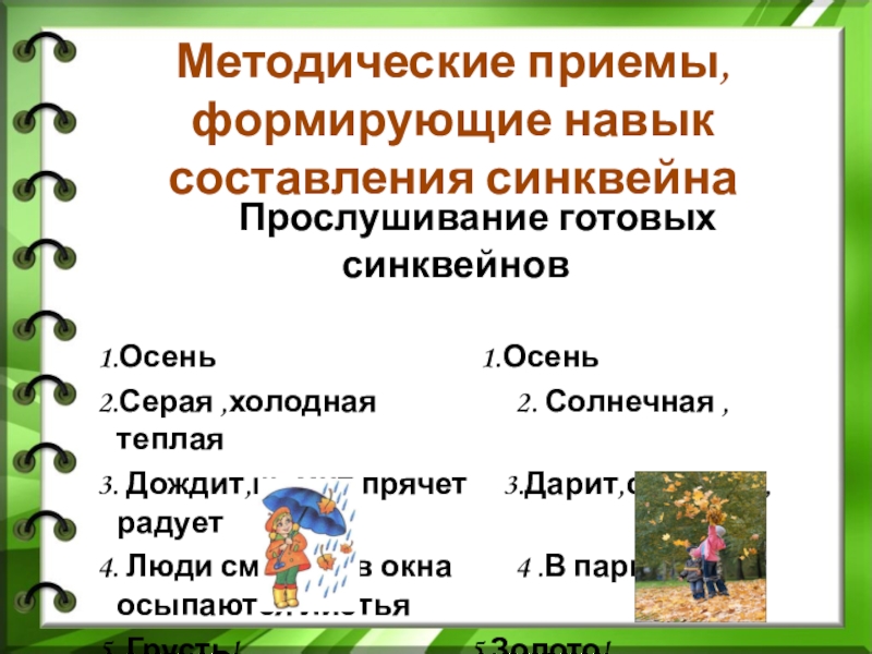 Методические приемы,формирующие навык составления синквейна