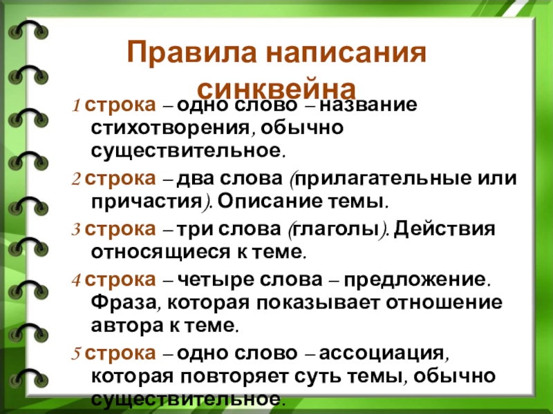 Правила написания синквейна