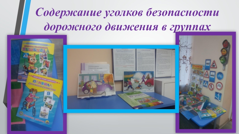 Слайд 9Содержание уголков безопасности дорожного движения в группах