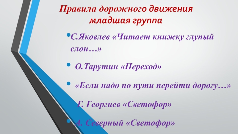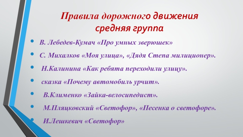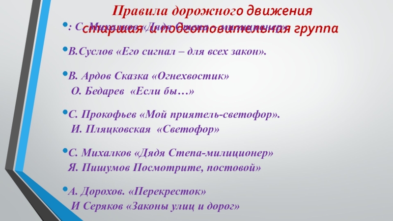 М.Пляцковский «Светофор», «Песенка о светофоре».