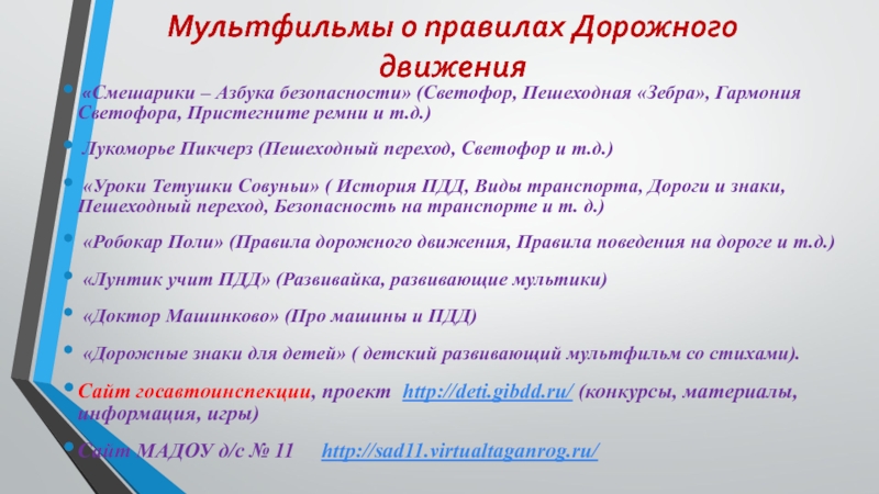 Слайд 19Мультфильмы о правилах Дорожного движения