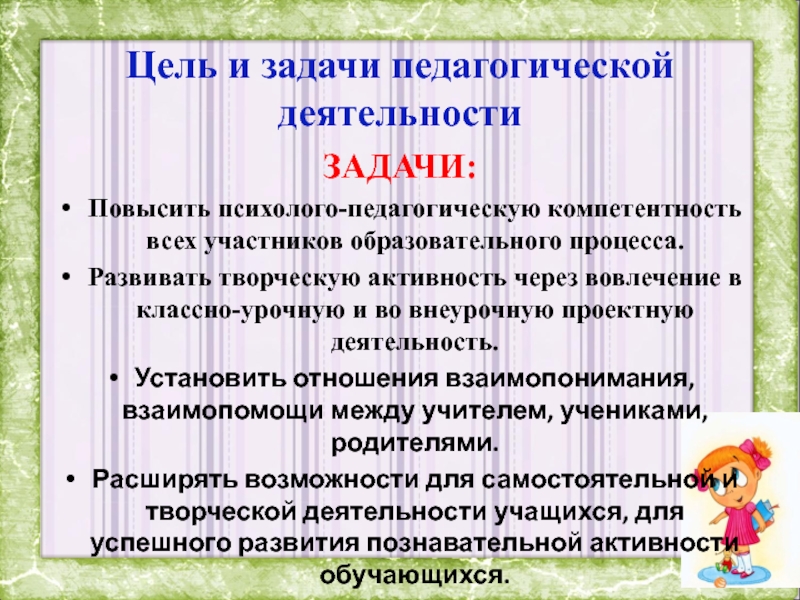 Установить отношения взаимопонимания, взаимопомощи между учителем, учениками, родителями.