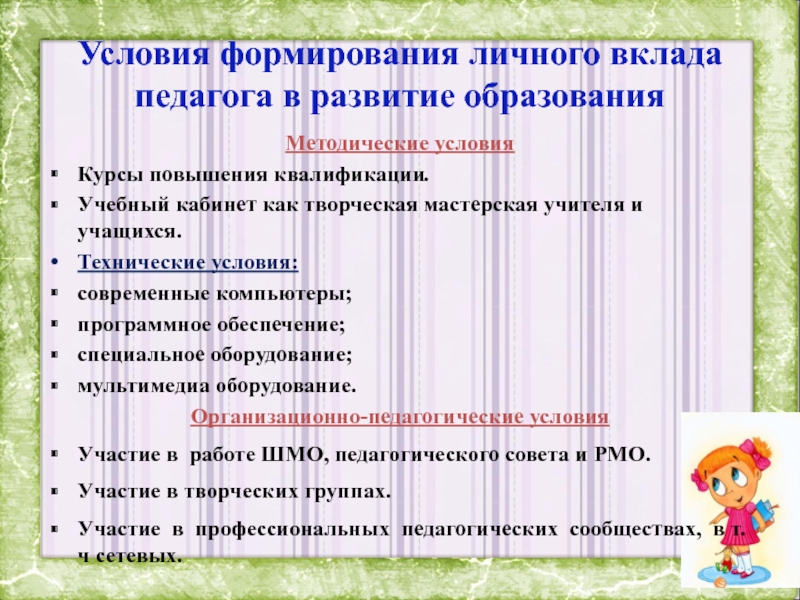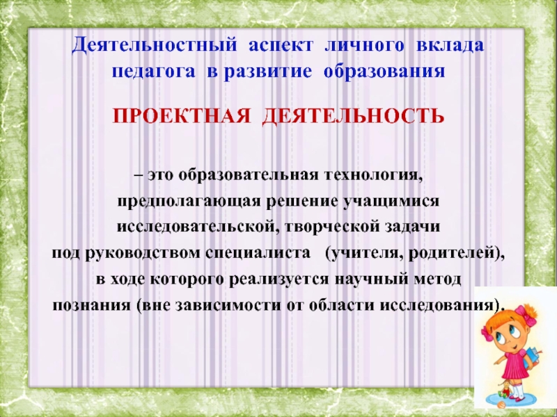 Слайд 10Деятельностный аспект личного вклада педагога в развитие образования
