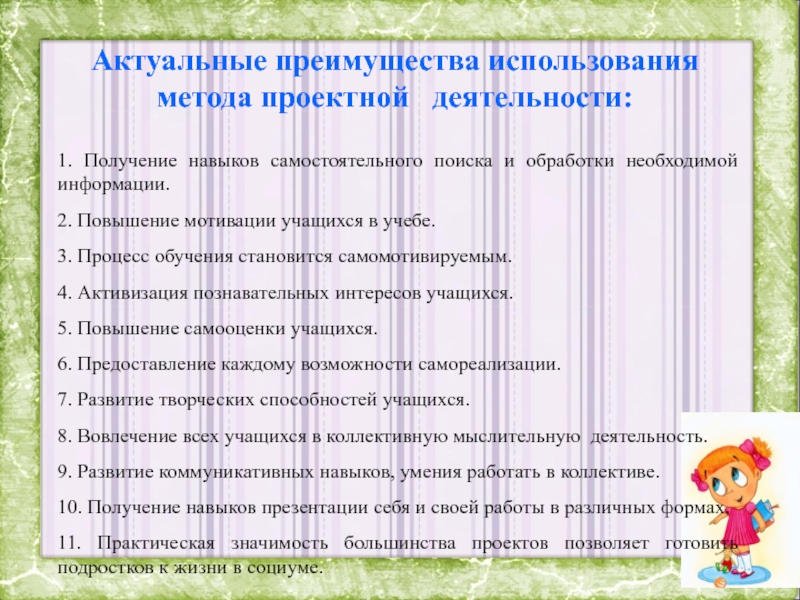 11. Практическая значимость большинства проектов позволяет готовить подростков к жизни в социуме.