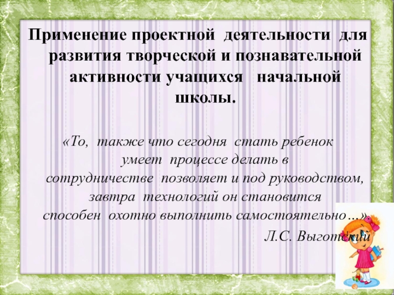 Слайд 2Применение проектной деятельности для развития творческой и познавательной активности учащихся