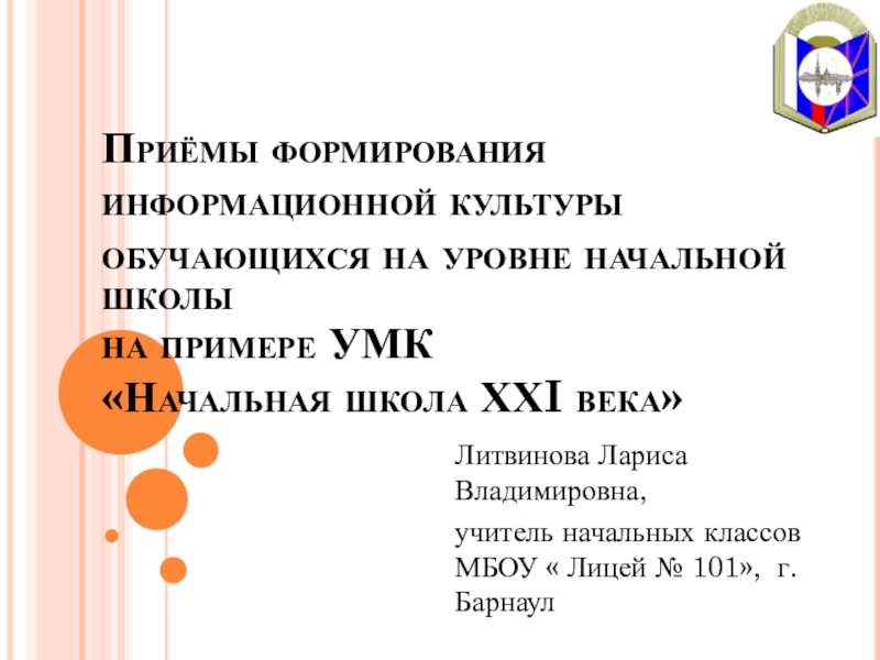 учитель начальных классов МБОУ « Лицей № 101», г. Барнаул