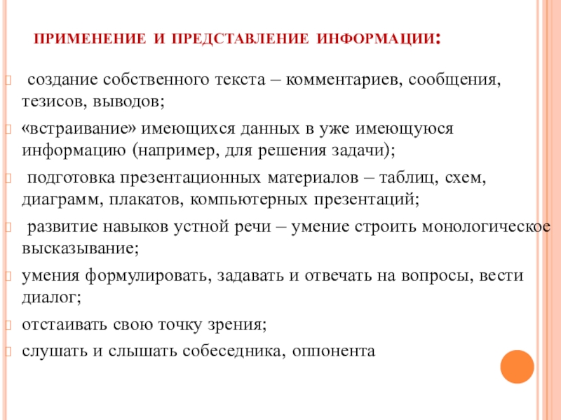 Применять информацию в учебной деятельности