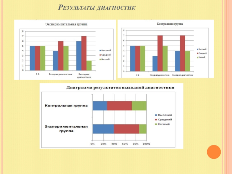 Диаграмма результатов выходной диагностики позволяют утверждать, что владение приёмами работы с модельной информацией дала положительный результат, где произошло увеличение процента количества детей высокого и среднего уровней.