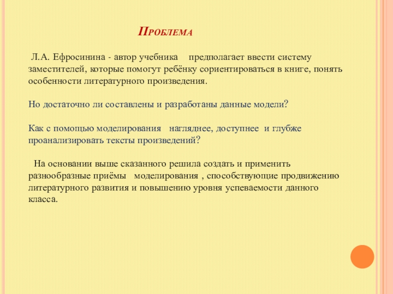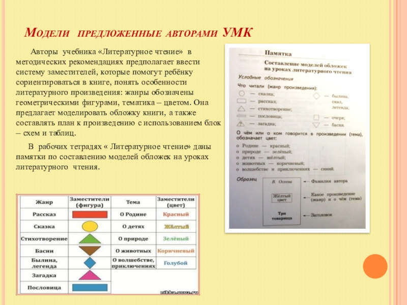 Л.А. Ефросинина - автор учебника предполагает ввести систему заместителей, которые помогут ребёнку сориентироваться в книге, понять особенности литературного произведения.
