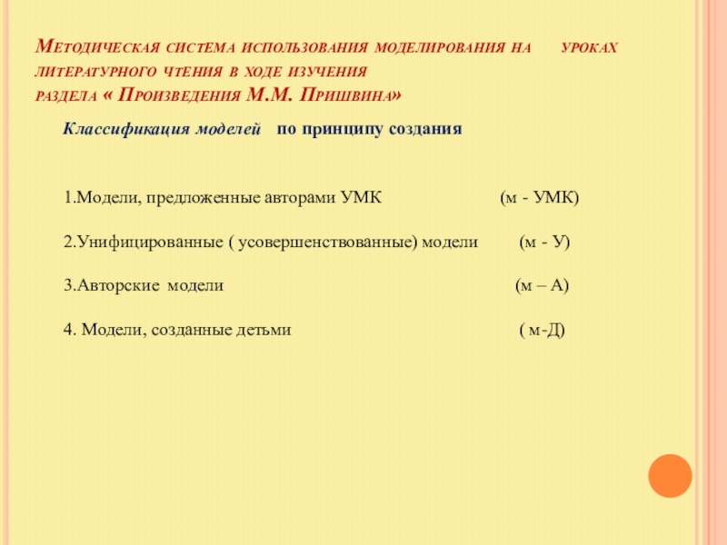 2.Унифицированные ( усовершенствованные) модели (м - У)