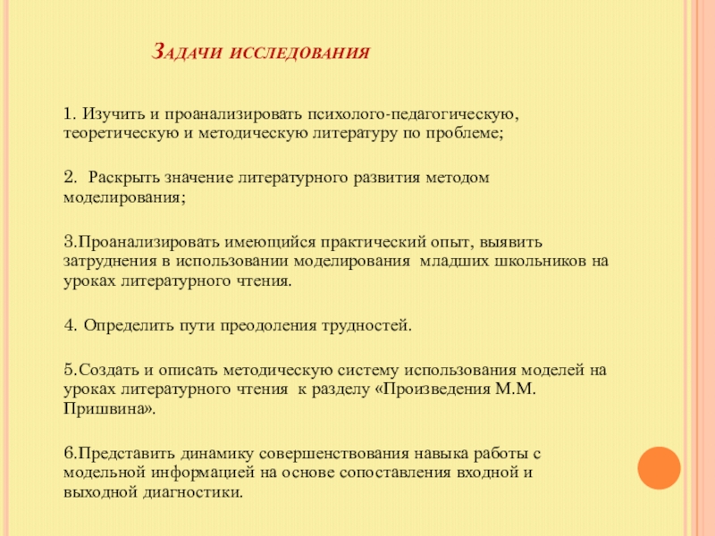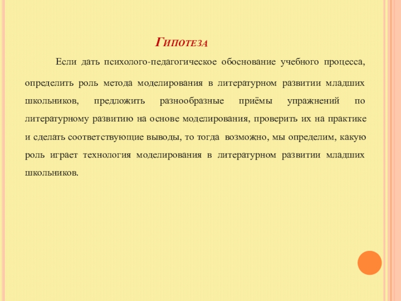 Если дать психолого-педагогическое обоснование учебного процесса, определить роль метода моделирования в литературном развитии младших школьников, предложить разнообразные приёмы упражнений по литературному развитию на основе моделирования, проверить их на практике и сделать соответствующие выводы, то тогда возможно, мы определим, какую роль играет технология моделирования в литературном развитии младших школьников.
