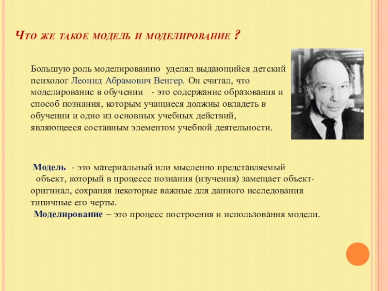 объект, который в процессе познания (изучения) замещает объект-оригинал, сохраняя некоторые важные для данного исследования типичные его черты.