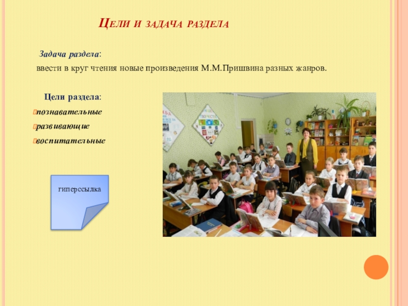 ввести в круг чтения новые произведения М.М.Пришвина разных жанров.