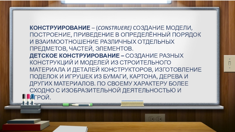 ДЕТСКОЕ КОНСТРУИРОВАНИЕ – СОЗДАНИЕ РАЗНЫХ КОНСТРУКЦИЙ И МОДЕЛЕЙ ИЗ СТРОИТЕЛЬНОГО МАТЕРИАЛА И ДЕТАЛЕЙ КОНСТРУКТОРОВ, ИЗГОТОВЛЕНИЕ ПОДЕЛОК И ИГРУШЕК ИЗ БУМАГИ, КАРТОНА, ДЕРЕВА И ДРУГИХ МАТЕРИАЛОВ. ПО СВОЕМУ ХАРАКТЕРУ БОЛЕЕ СХОДНО С ИЗОБРАЗИТЕЛЬНОЙ ДЕЯТЕЛЬНОСТЬЮ И ИГРОЙ.