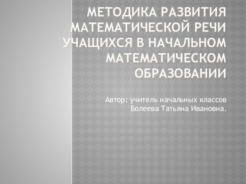 КАЧЕСТВА МАТЕМАТИЧЕСКОЙ РЕЧИ УЧАЩИХСЯ: