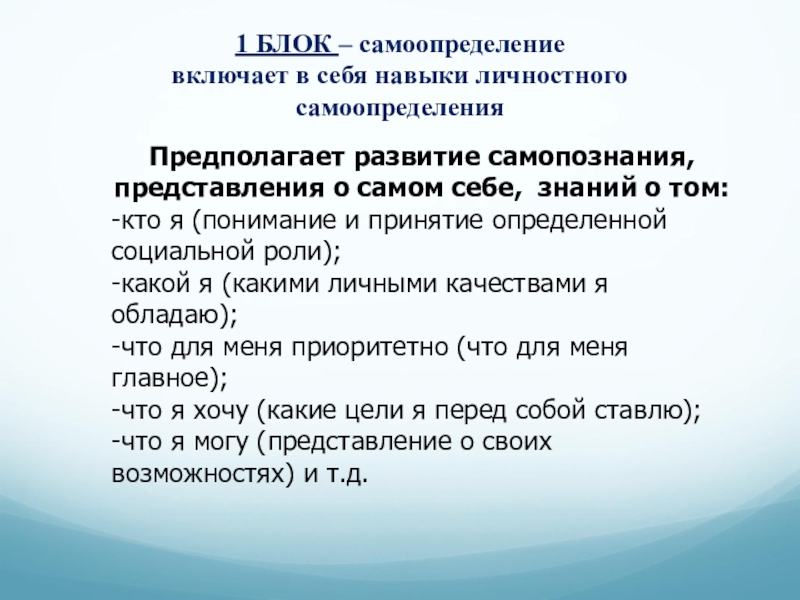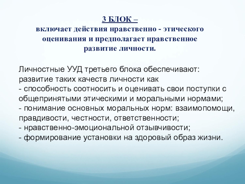 Личностные УУД третьего блока обеспечивают: