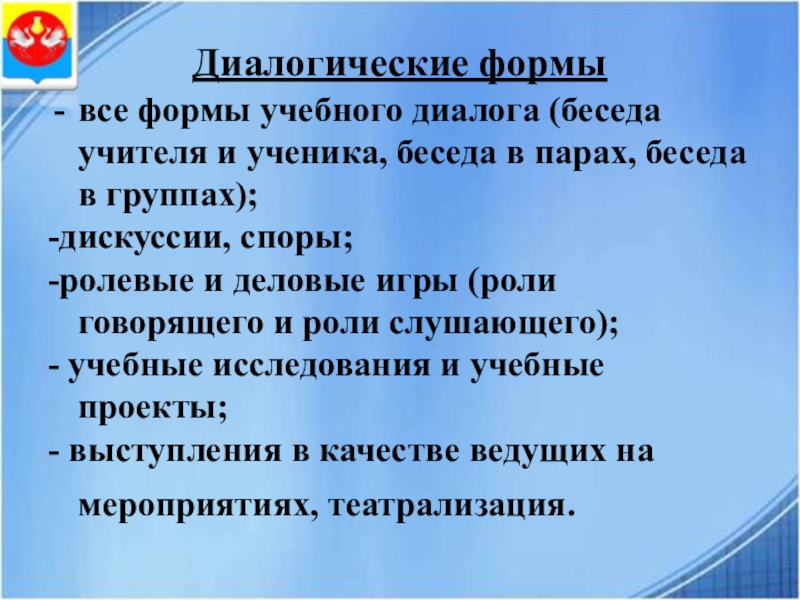 все формы учебного диалога (беседа учителя и ученика, беседа в
