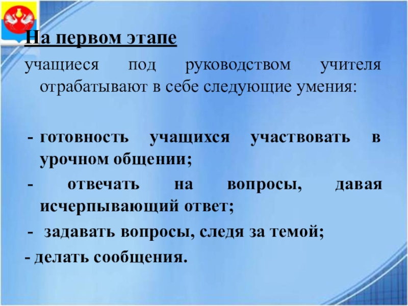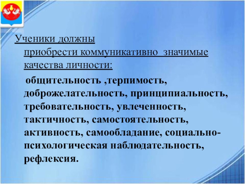 Ученики должны приобрести коммуникативно значимые качества личности: