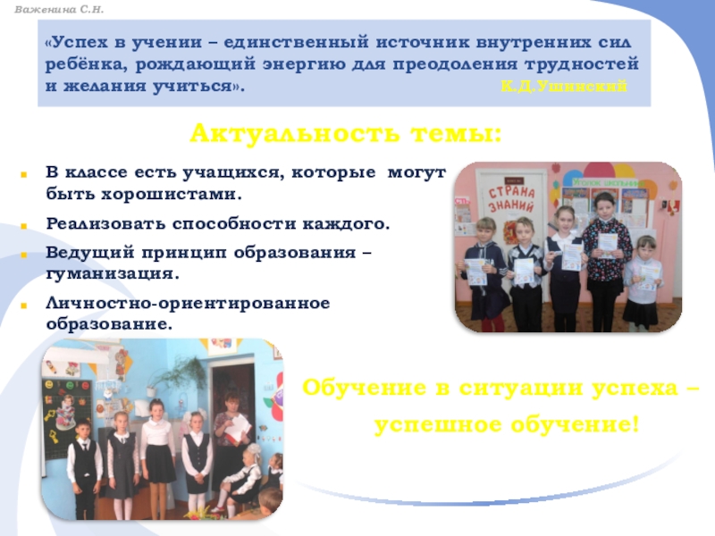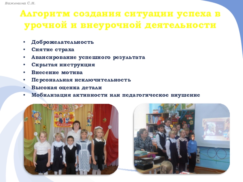 Алгоритм создания ситуации успеха в урочной и внеурочной деятельности