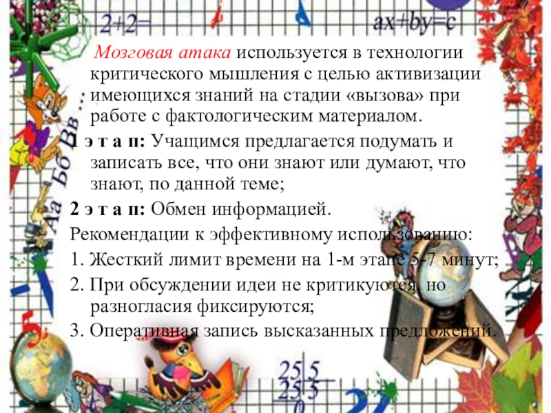 Слайд 10 Мозговая атака используется в технологии критического мышления с