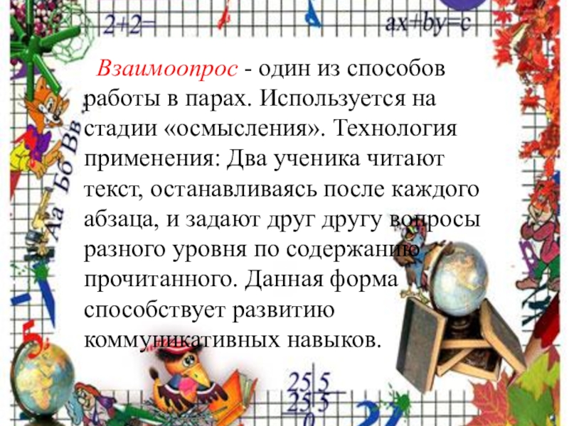Слайд 14 Взаимоопрос - один из способов работы в парах.