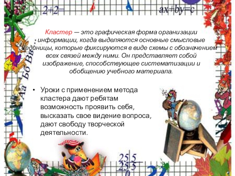 Слайд 2Кластер — это графическая форма организации информации, когда выделяются основные смысловые